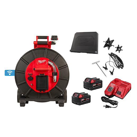 Our M18™ 200’ Pipeline Inspection System delivers the clearest image, easiest inspections for 3"-10” sewer lines up to 200’. Featuring the industry’s shortest 34 mm 1080p HD self-leveling camera head, and the ability to digitally zoom up to 4X and pan, technicians can now see more in drain lines than ever before. This system features a telescoping handle and wide wheelbase making transportation on and off the jobsite easier than ever.. Powered by M18™ REDLITHIUM™ 5.0 batteries, the M18™ 500GB Control Hub powers the reels, stores recordings, and easily swaps between reel sizes delivering unmatched system versatility. Capture, create, and share custom photos and videos from the M18™ Wireless Monitor or directly from a tablet or mobile device for faster sharing of findings. This sewer line camera is also equipped with ONE-KEY™ Technology, providing you with the ability to track the tool's location, manage it in inventory, and lock the tool out to help protect your investment. Our M18™ 200’ Pipeline Inspection System includes (1) 200' Pipeline Inspection Reel, (1) M18™ 500 GB Control Hub, (2) M18™ XC 5.0 Batteries, (1) M18™ & M12™ Rapid Charger, (1) Tablet Mount, (1) small camera head skid for 34 mm camera, and (1) medium camera head skid for 34 mm camera head.